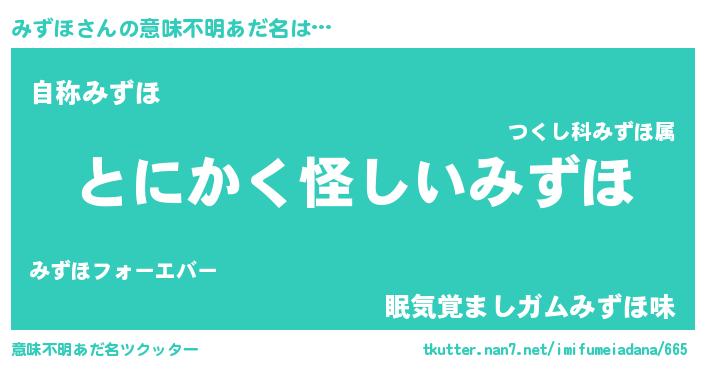 | ヒーロー風カッコイイあだ名 | 『炎刃騎士ミズ』『超時空戦士ミズホ』 |