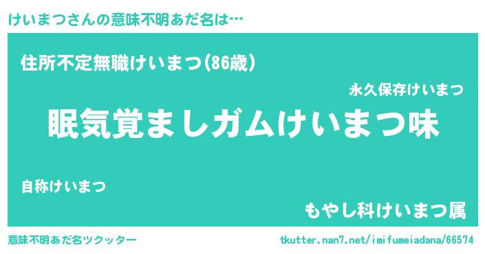 | ヘコむあだ名 | 『けいまつ(小並感)』『けいにゅー』 |