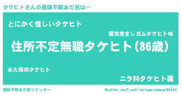 男性向けラノベタイトル風あだ名 | 『魔弾の王とタケヒト』 |