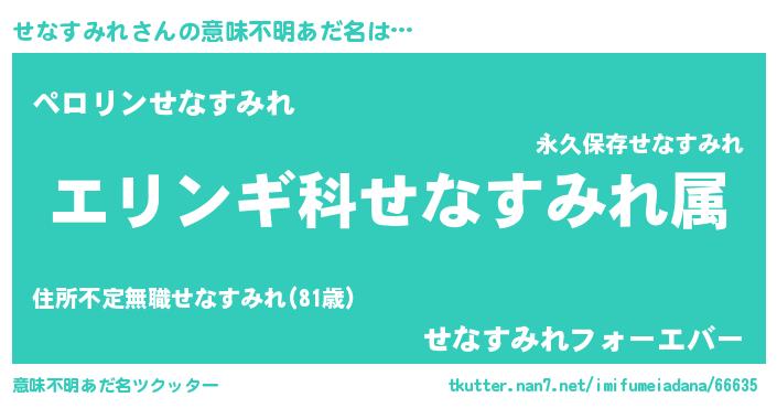 | 男性向けラノベタイトル風あだ名 | 『セナスミレスレイヤー』 |