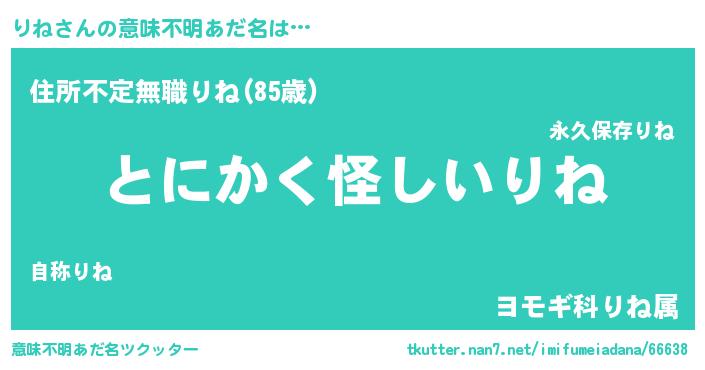 | 胡散臭い通販商品みたいなあだ名 | 『信頼と実績のサプリメント…その名も「りね」』 |