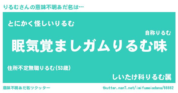 | 料理風あだ名 | 『栗とりるむのマフィン』『りるむごはん』 |
