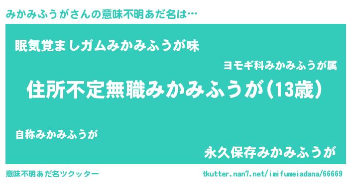 | 男性向けラノベタイトル風あだ名 | 『魔弾の王とみかみふうが』 |