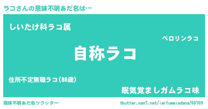 | 女子向けラノベタイトル風あだ名 | 『ラコなんてお断りですっ。』 |