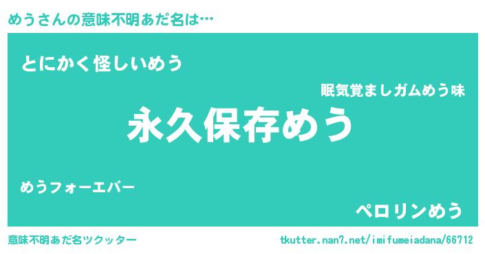 | 男性向けラノベタイトル風あだ名 | 『めうという概念が存在しない退屈な世界 』 |