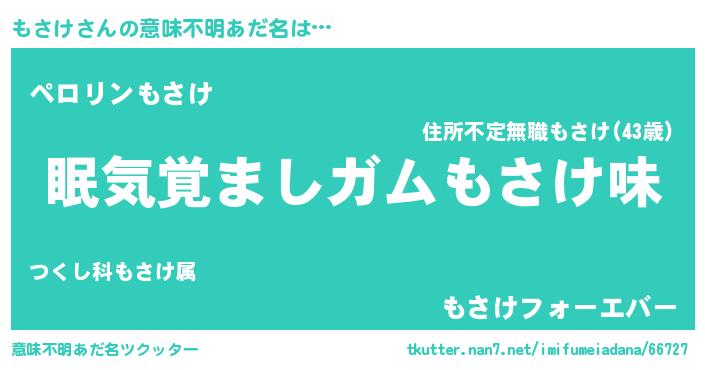 | ヘコむあだ名 | 『もさもー』『牛乳』『もさけ(苦笑)』 |
