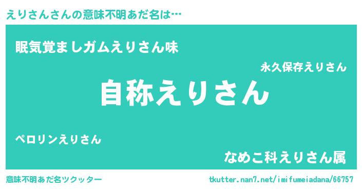 | 男性向けラノベタイトル風あだ名 | 『Re:えりさんから始める異世界生活』 |