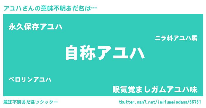 | ヒーロー風カッコイイあだ名 | 『最強戦士アユハ』『ネオアユハ』 |
