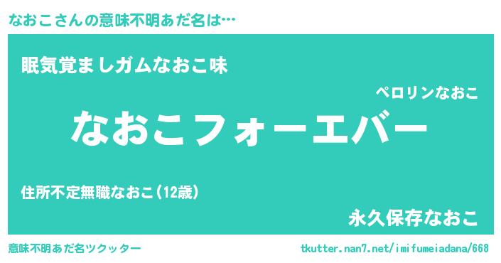 | ファンタジー風あだ名 | 『エターナルナオコー』『クインナット』 |