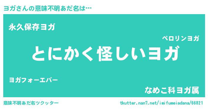 | 胡散臭い通販商品みたいなあだ名 | 『信頼と実績のサプリメント…その名も「ヨガ」』 |