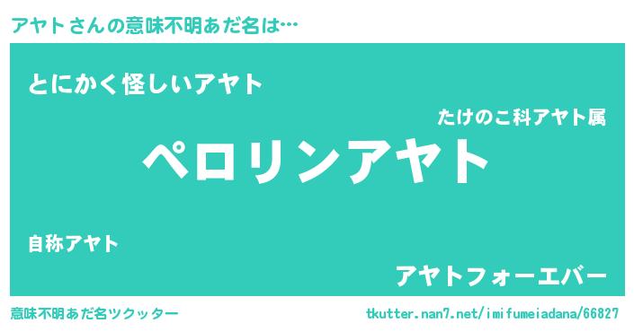 | ポケモン風あだ名 | 『アヤチュウ』『ヒアヤト』 |