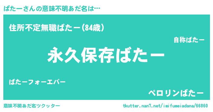 | 男性向けラノベタイトル風あだ名 | 『ばたーという概念が存在しない退屈な世界 』 |