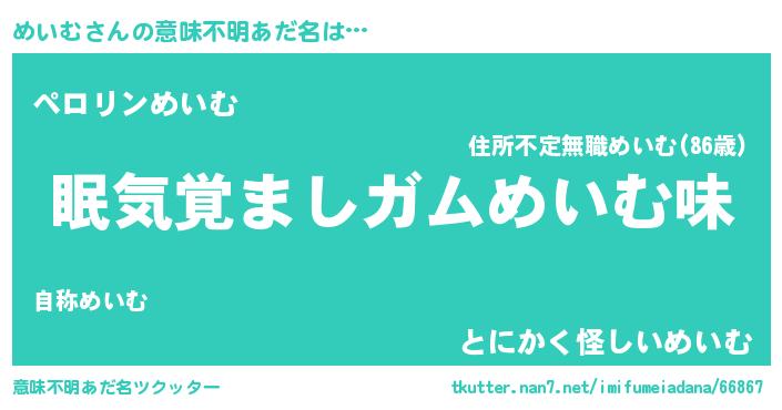 | ヘコむあだ名 | 『めいにー』『めいぷりん』『豆乳』 |