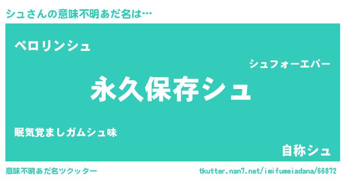 | ヘコむあだ名 | 『シュ(笑)』『シュにー』『酢こんぶ』 |