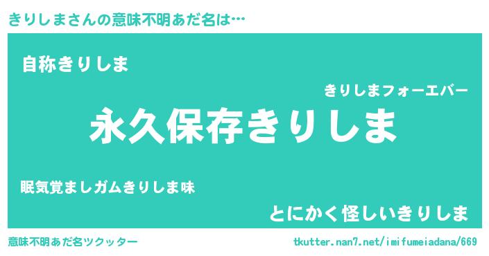 | ヘコむあだ名 | 『きりしま(震え声)』『きりっちょ』 |