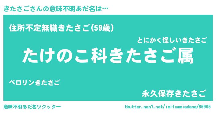 | 男性向けラノベタイトル風あだ名 | 『転生したらきたさごだった件』 |