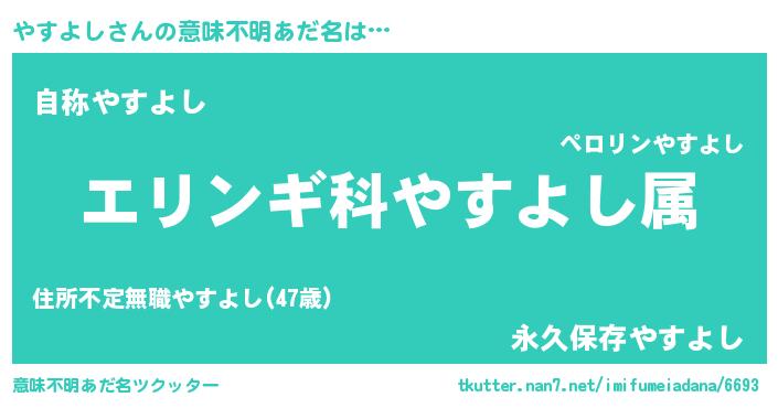 | ヒーロー風カッコイイあだ名 | 『超時空戦士ヤスヨシ』『ネオヤスヨシ』 |