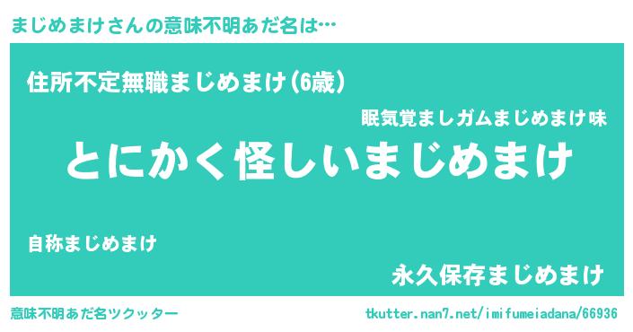 | 男性向けラノベタイトル風あだ名 | 『まじめまけの嫁は女の子じゃないと思った?』 |