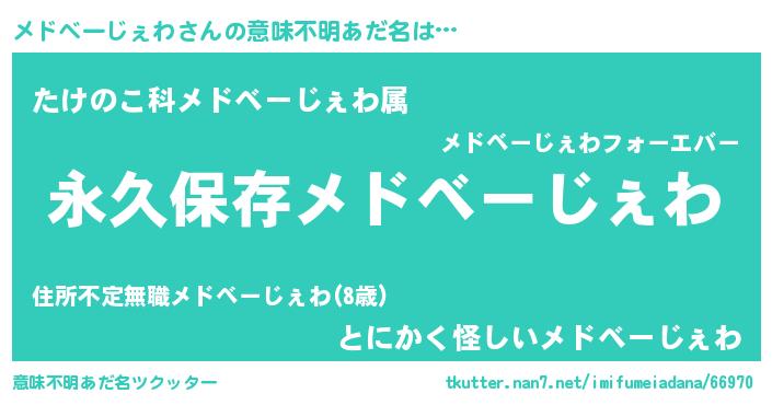 | ヘコむあだ名 | 『メドベーじぇわ(苦笑)』『メドお』 |