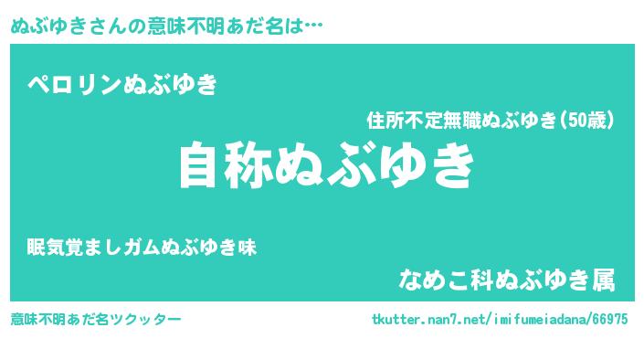 | ヘコむあだ名 | 『ぬぶもー』『豆乳』『ぬぶを』 |