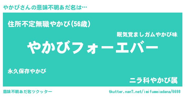 | ヒーロー風カッコイイあだ名 | 『ウルトラやかびマン』『仮面ヤカダー』 |