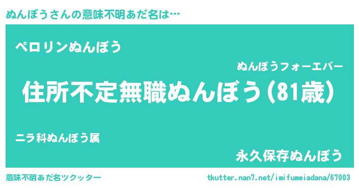 | 胡散臭い通販商品みたいなあだ名 | 『あなたにだけ特別に提供する世界で10本だけ現存している希少なブランデー…その名も「ぬんぼう」』 |