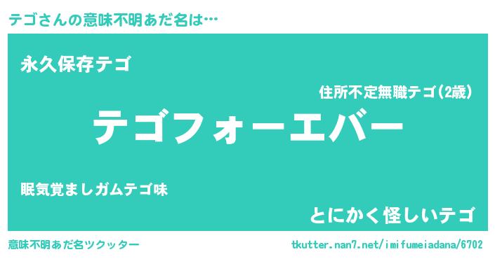 | ポケモン風あだ名 | 『テゴダネ』『ゼニテゴ』『テゴゴンZ』 |