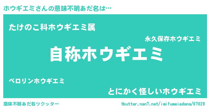 | ヒーロー風カッコイイあだ名 | 『究極戦士ホウギエミ』『魔戒騎士ホウ』 |