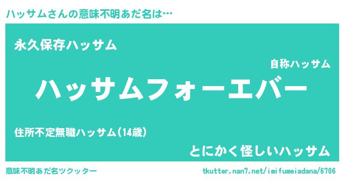 | ファンタジー風あだ名 | 『エターナルハッサムー』『ゼハットゥ』 |