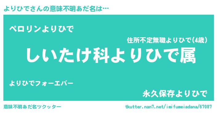 | 男性向けラノベタイトル風あだ名 | 『ヨリヒデスレイヤー』 |