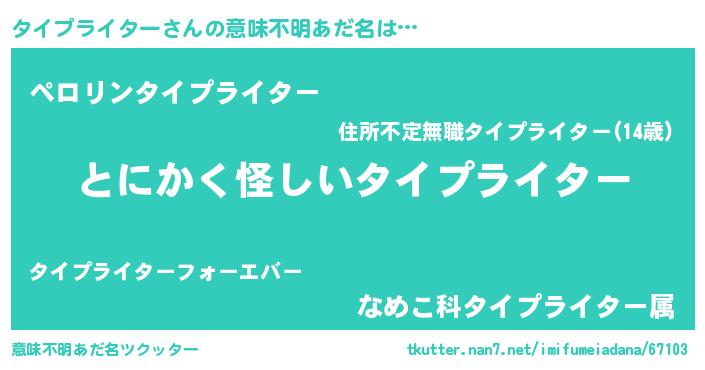 | 女子向けラノベタイトル風あだ名 | 『タイプライターは平凡を望む』 |