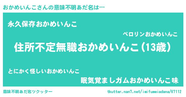 | ヘコむあだ名 | 『おかめいんこ(笑)』『おかにゅー』 |