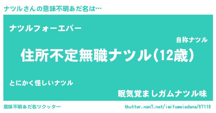 | ポケモン風あだ名 | 『ナーツイ』『ナツルダネ』 |