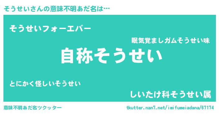 | ヒーロー風カッコイイあだ名 | 『最強戦士ソウセイ』『愛の使者そうせい』 |