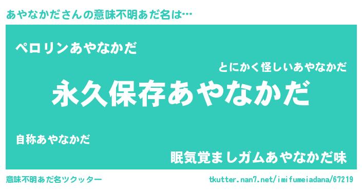 | 男性向けラノベタイトル風あだ名 | 『あやなかだという概念が存在しない退屈な世界 』 |