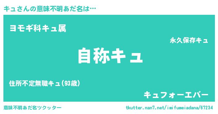 | ヒーロー風カッコイイあだ名 | 『最強戦士キュ』『ウルトラキュマン』 |