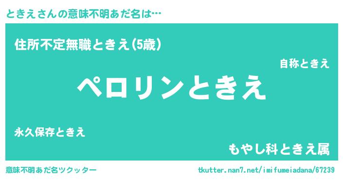 | ヘコむあだ名 | 『ときもー』『ときえ(小並感)』 |