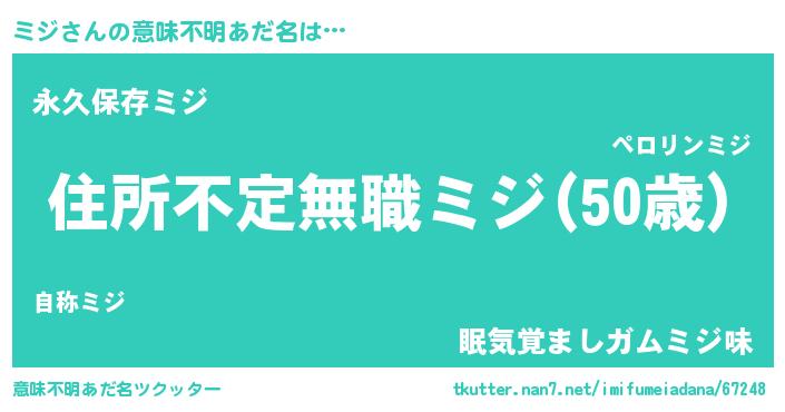 | ヘコむあだ名 | 『ミジ(笑)』『ミジっふぃ~』 |