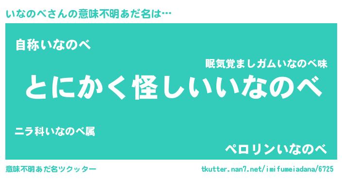 | 女子向けラノベタイトル風あだ名 | 『いなのべの卵を拾いまして』 |