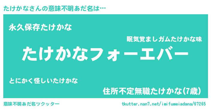 | ヒーロー風カッコイイあだ名 | 『ウルトラたけかなマン』『ネオタケカナ』 |