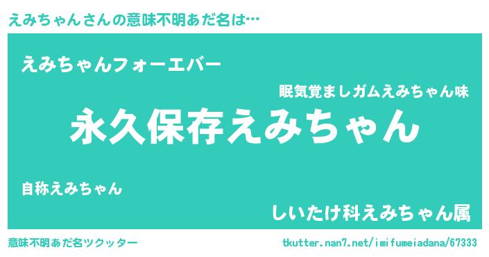 | 女子向けラノベタイトル風あだ名 | 『異世界で失敗しない100のえみちゃん』 |