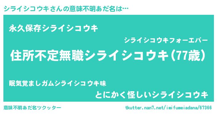 | 欧米人風あだ名 | 『シライシコウキ・ステッグマイヤー』 |