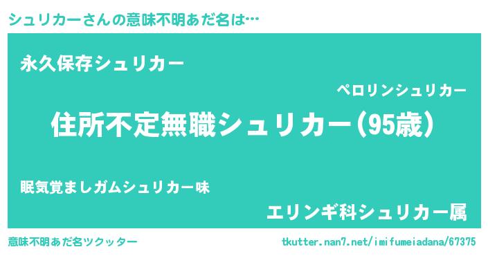 | ヒーロー風カッコイイあだ名 | 『仮面シュダー』『ネオシュリカー』 |