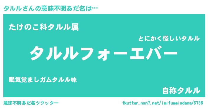 | 男性向けラノベタイトル風あだ名 | 『やはりタルルの青春ラブコメはまちがっている 』 |