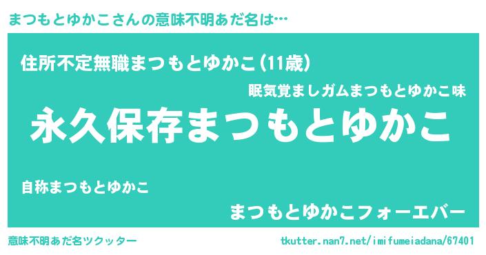 | 女子向けラノベタイトル風あだ名 | 『まつもとゆかこの契約王妃』 |