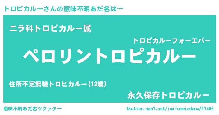 | ヒーロー風カッコイイあだ名 | 『スーパートロピカルー』『仮面トロダー』 |