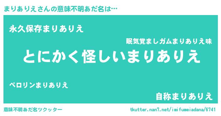 | 胡散臭い通販商品みたいなあだ名 | 『信頼と実績のサプリメント…その名も「まりありえ」』 |