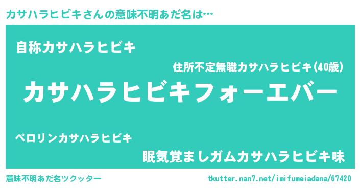 | ファンタジー風あだ名 | 『エターナルカサハラヒビキー』 |