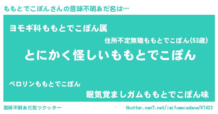 | 男性向けラノベタイトル風あだ名 | 『ダンジョンにももとでこぽんを求めるのは間違っているだろうか』 |