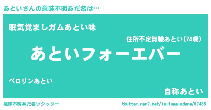 | 欧米人風あだ名 | 『あといクリステル』『ダニエルあとい』 |